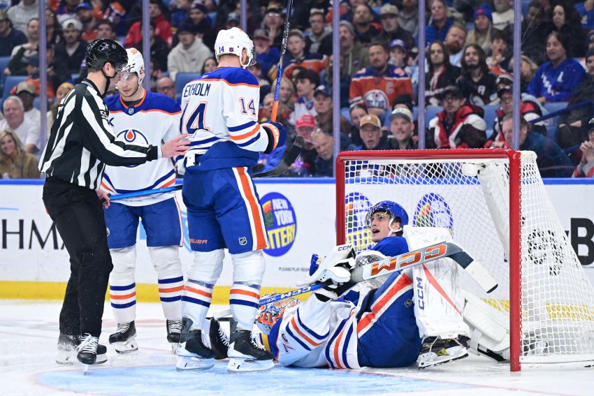 The 6-foot-6, 220-pound Thompson nearly scored a similar goal in Monday’s 5-1 victory over the Edmonton Oilers, but as he drove past defenseman Mattias Ekholm in the right circle, they got tangled up. Thompson crashed into the net before he could shoot.