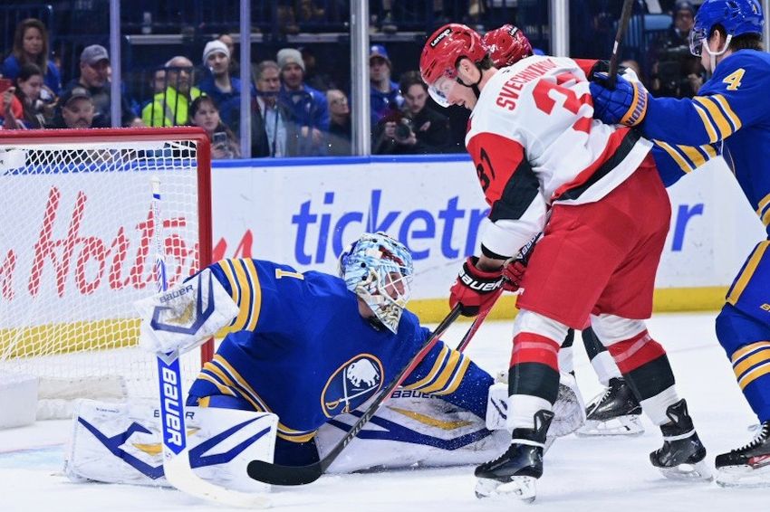 He stood tall throughout Sunday afternoon’s 4-1 win, making 29 saves. He earned another nod because he looked sharp in Friday’s 9-3 shellacking of the Chicago Blackhawks, making 20 saves, including a critical breakaway stop on Connor Bedard to keep the Sabres’ lead at 5-2.