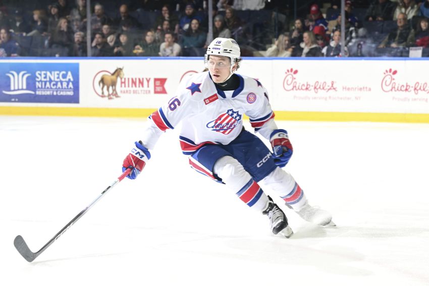 Entering Rochester’s road game Wednesday against the Belleville Senators, his nine goals were tied for the team lead with winger Isak Rosen.